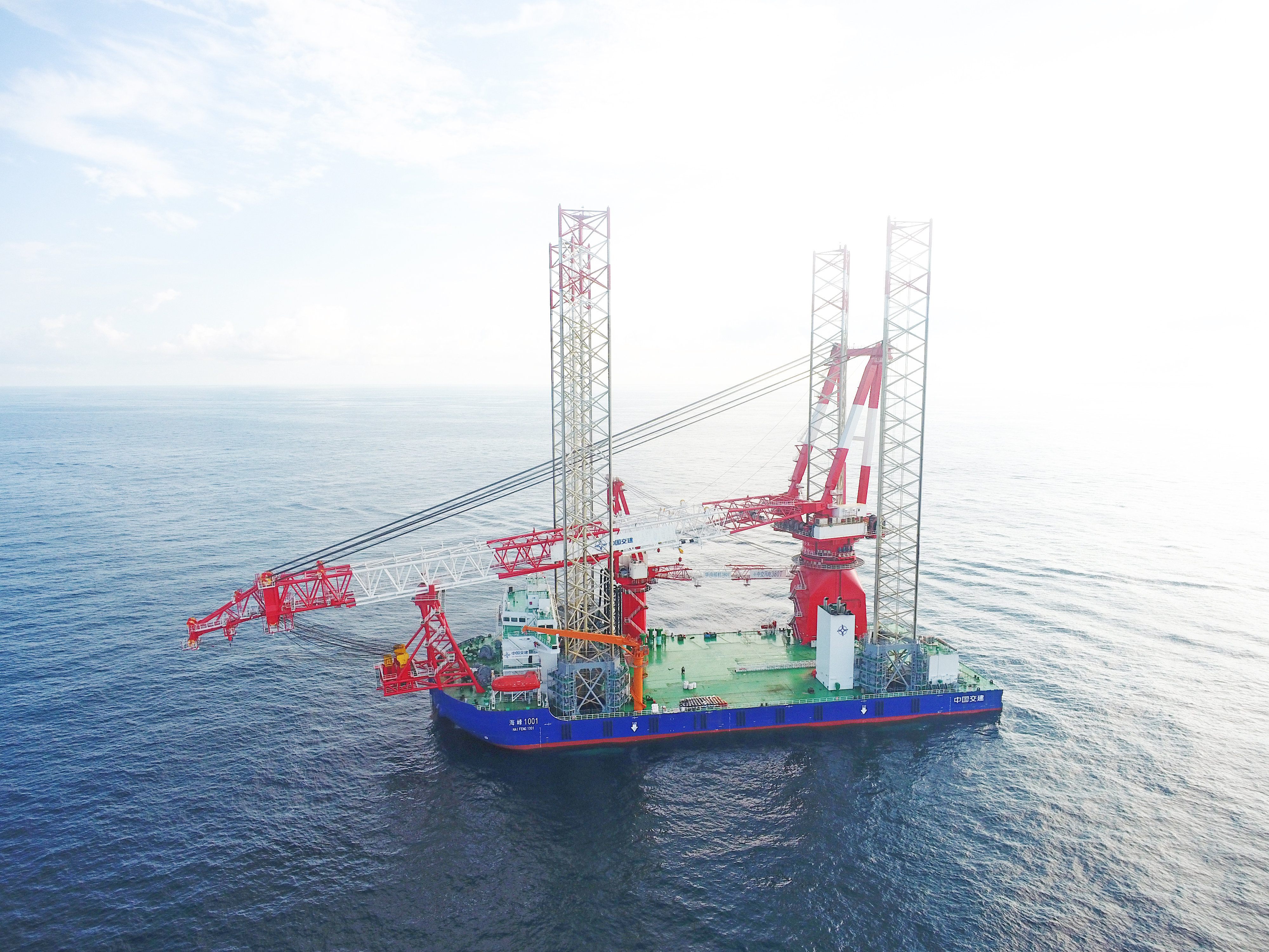 “海峰1001”总长133.8米,型宽50米,型深11米,设计航速9节。该船采用最新的工程设计理念和先进的技术手段,具备出色的操作性能和可靠性,配备2500吨绕桩式全回转起重机,具有DP-2动力定位能力,可同时运载2套15MW风机机组设备,最大作业水深70m,可进行无限航区航行,满足B级冰区航行,同时取得多项知识产权,适用智能船舶规范。该平台是一艘现代化、高性能的装备,多项核心技术实现国产化,是国内迄今为止建造的起重能力最大的风电安装平台,其能够在复杂海况下实现精确定位,满足未来深远海风场运输安装一体化的施工作业。