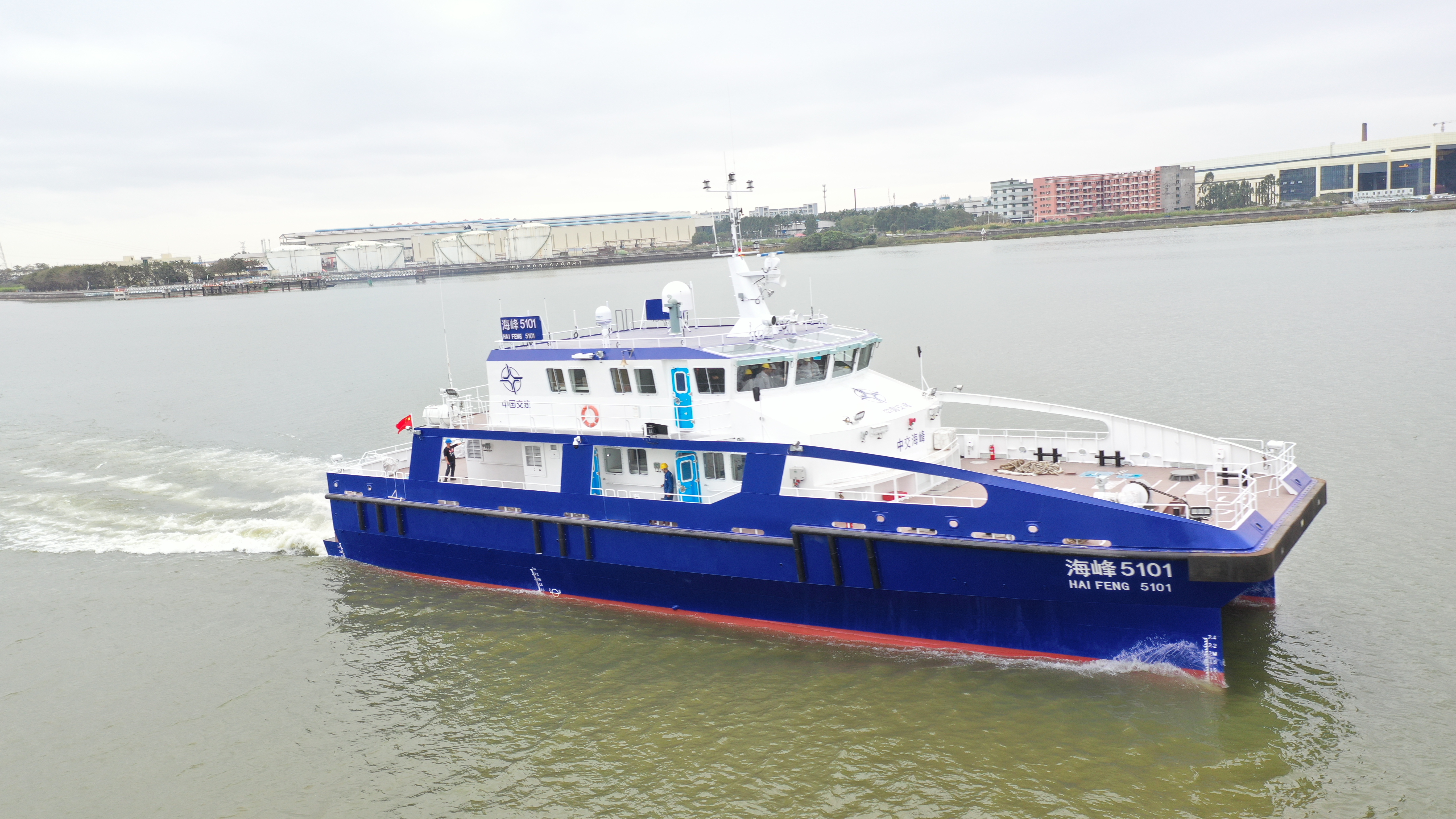 “海峰5101”风电运维船是不朽情缘免费试玩网站打造的最新一代海上风电运维船舶(CTV),该船入级CCS船级社,全铝双体半小水线面结构设计,总长33.2米,型宽10.8米,型深4.4米,试航航速约27节,续航能力达到500海里,额定载客12人,快速性好、耐波性强,是目前国内首制半小水线面型全铝双体风电运维船型。