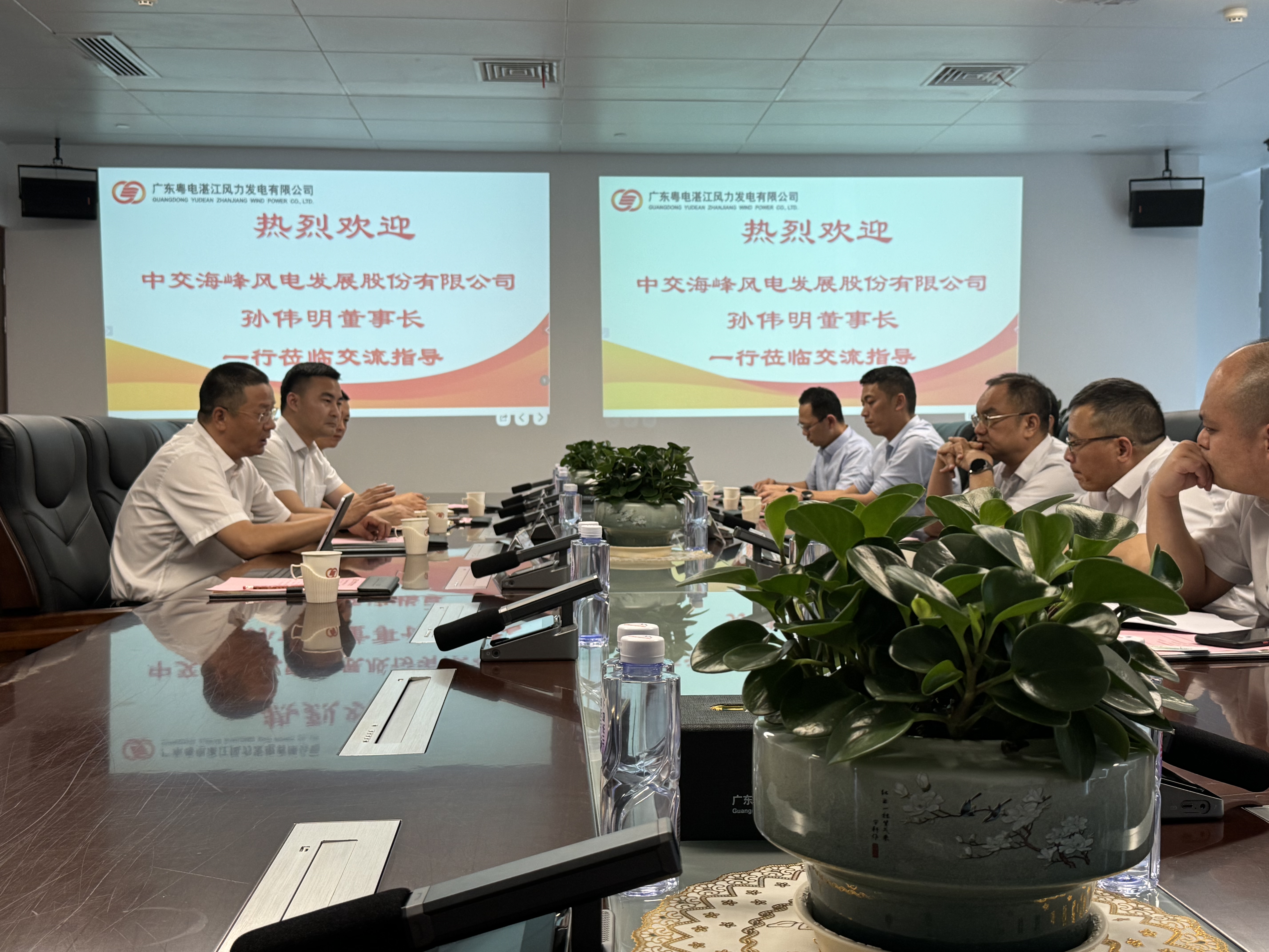 5月30日,孙伟明拜会广东粤电湛江风力发电有限公司党委书记、董事长、总经理陈伟球。双方围绕海上风电运维合作议题进行了深入细致的交流与研讨,双方愿共同攻克海上新能源业务的技术难题,探索多元化的合作模式。