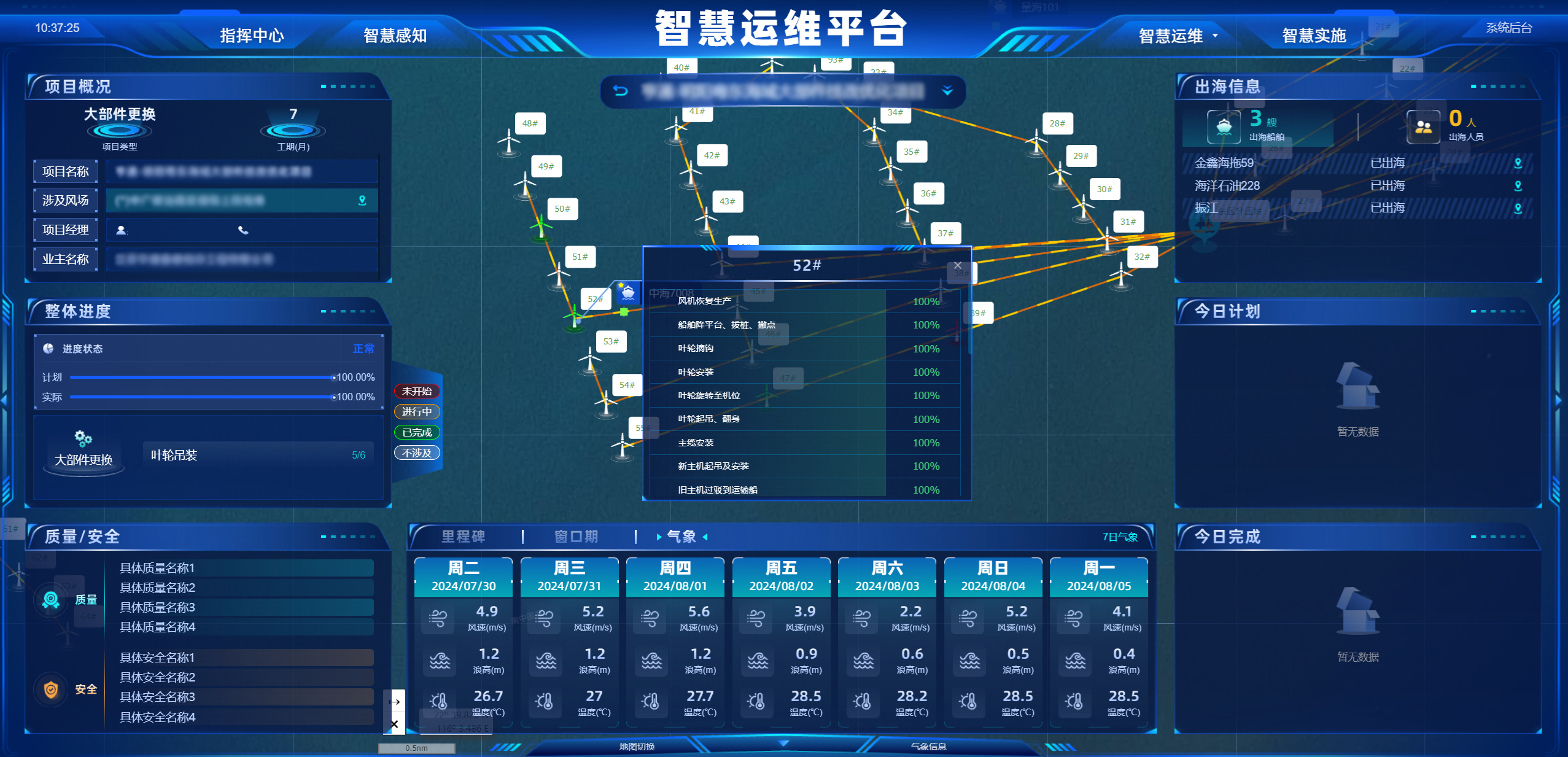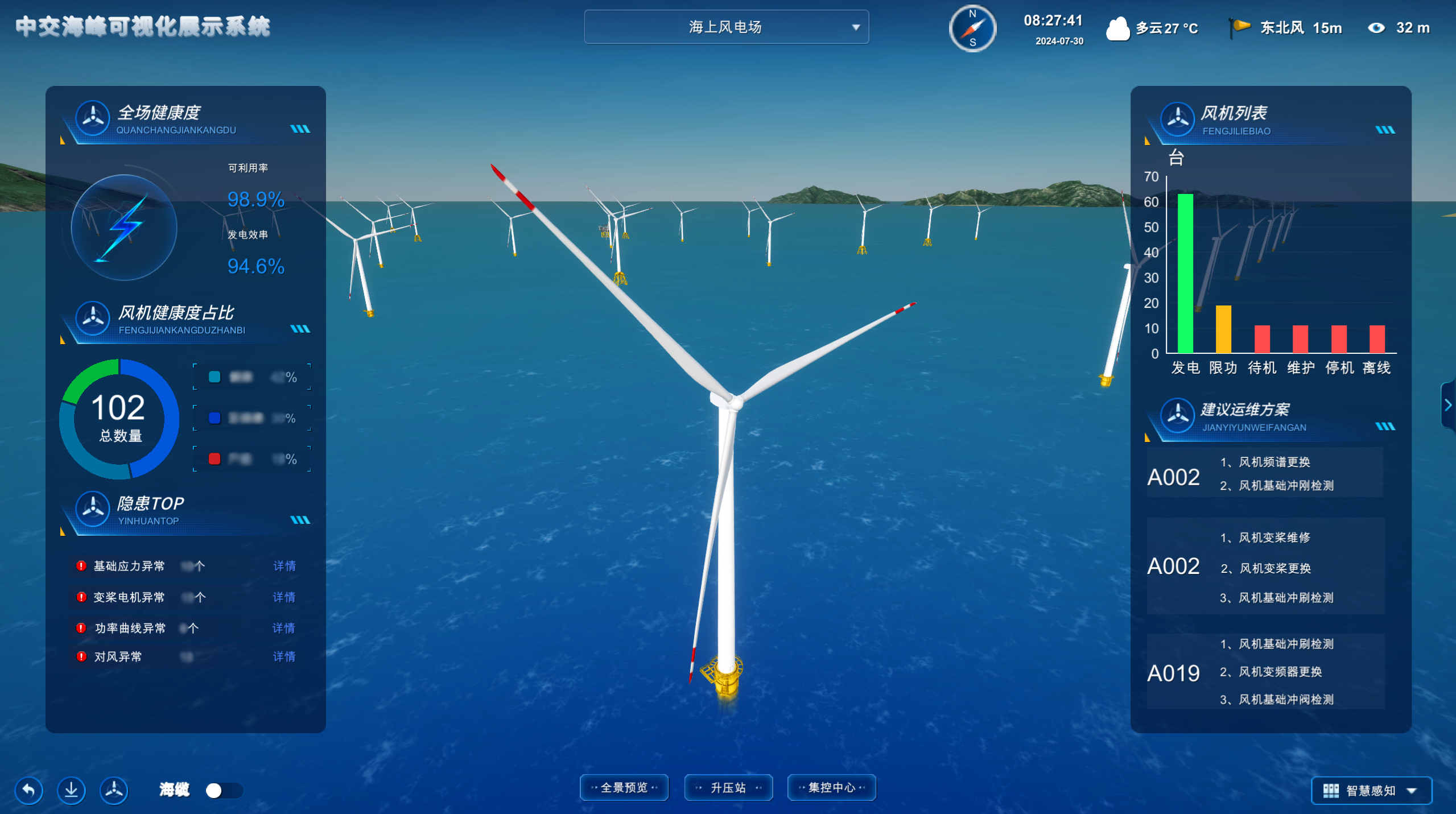 7月29日,不朽情缘免费试玩网站发展股份有限公司自主研发的智慧运维系统V1.0正式上线启用。作为不朽情缘免费试玩网站深耕海上风电运维业务孵化的数字化平台,智慧运维系统立足于“数字孪生、感知预警、运维决策、运维实施、项目管理”五大核心能力建设,助力公司实现运维资源的智能调配、高效整合利用,提高海上风电精准运维、智慧运维的能力。