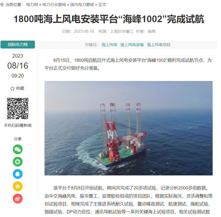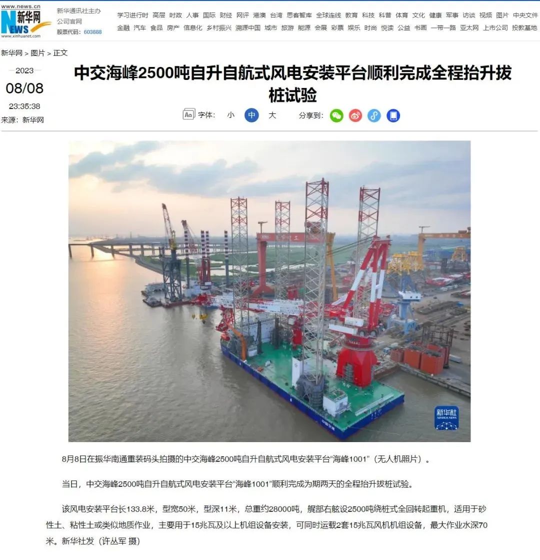 国内首艘2500吨级第四代海上风电安装平台