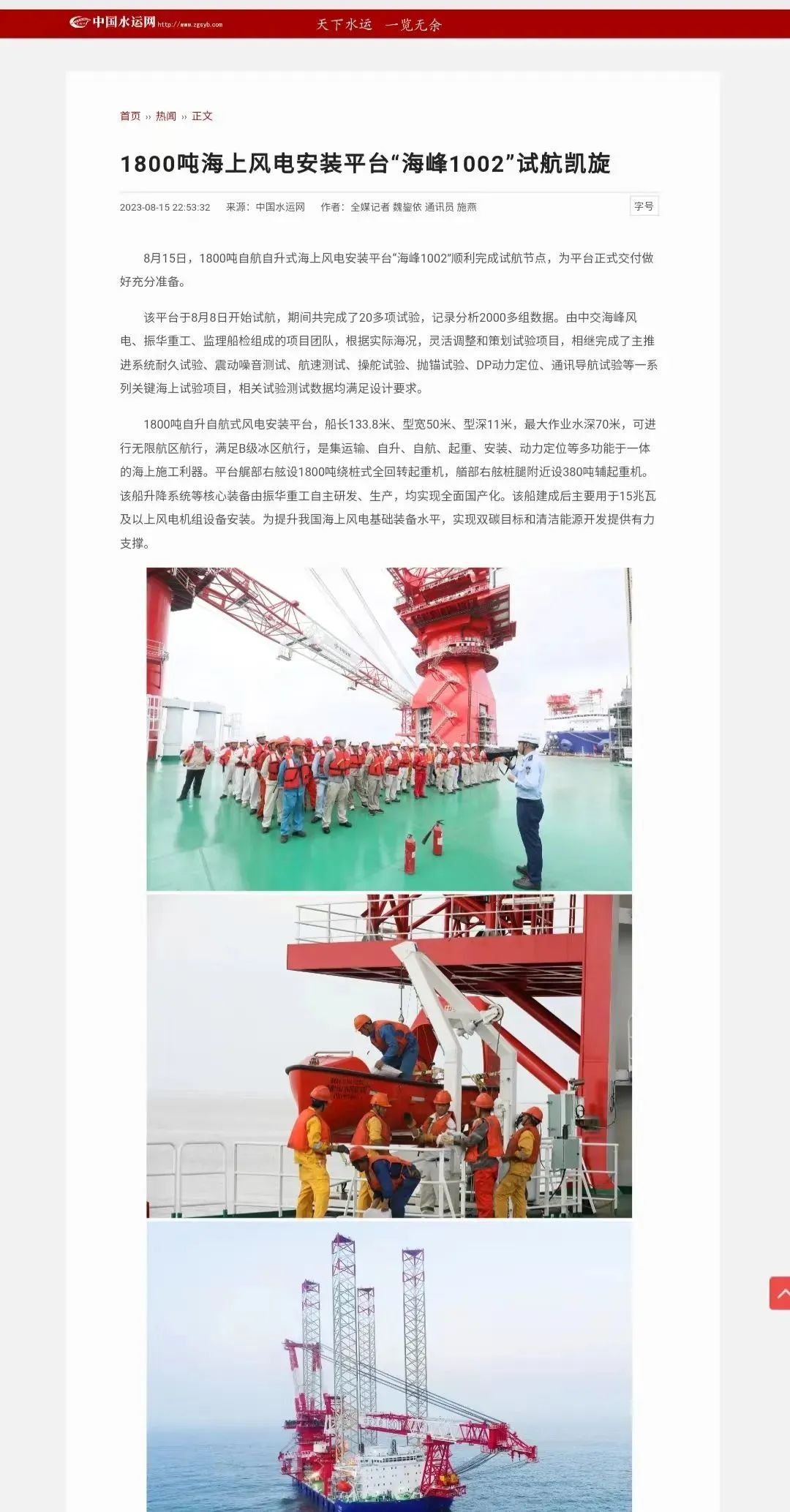 1800吨自升自航式风电安装平台