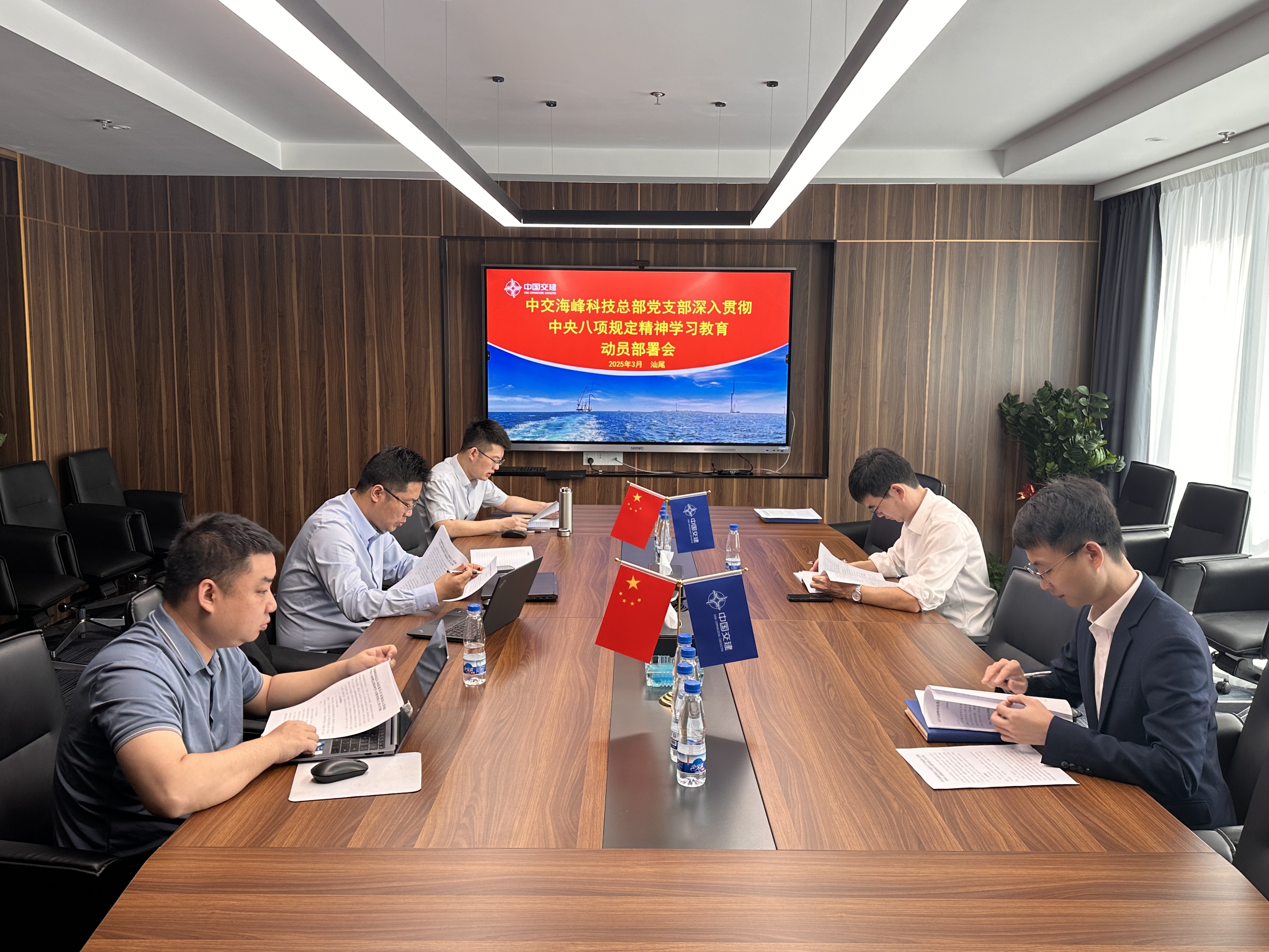 3月27日,中交海峰科技总部党支部召开深入贯彻中央八项规定精神学习教育动员部署会,传达学习中央党的建设工作领导小组会议、中共中央办公厅《关于在全党开展深入贯彻中央八项规定精神学习教育的通知》精神,以及国务院国资委党委、集团党委及公司党委部署会议工作要求。