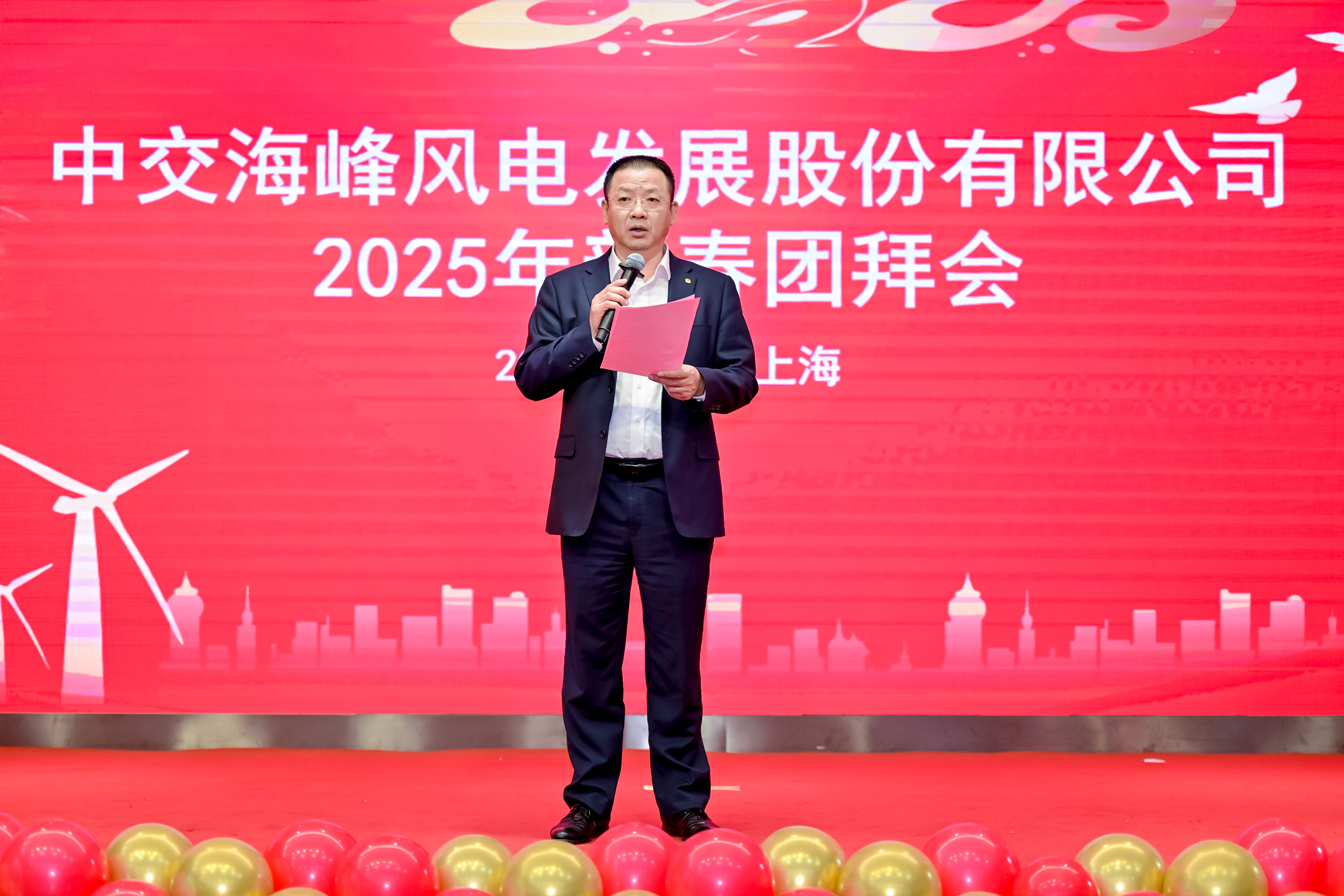 公司党委书记、董事长孙伟明代表公司领导班子感谢全体职工在过去一年的辛勤付出,回顾了2024年公司高质量发展成就,希望在新的一年中,全体海峰人要以不懈奋斗的姿态、以永不言败的信念,勇于担当、坚定前行,在工作中争当排头兵和生力军,共同全力打造“三型”世界一流海上风电综合服务商。